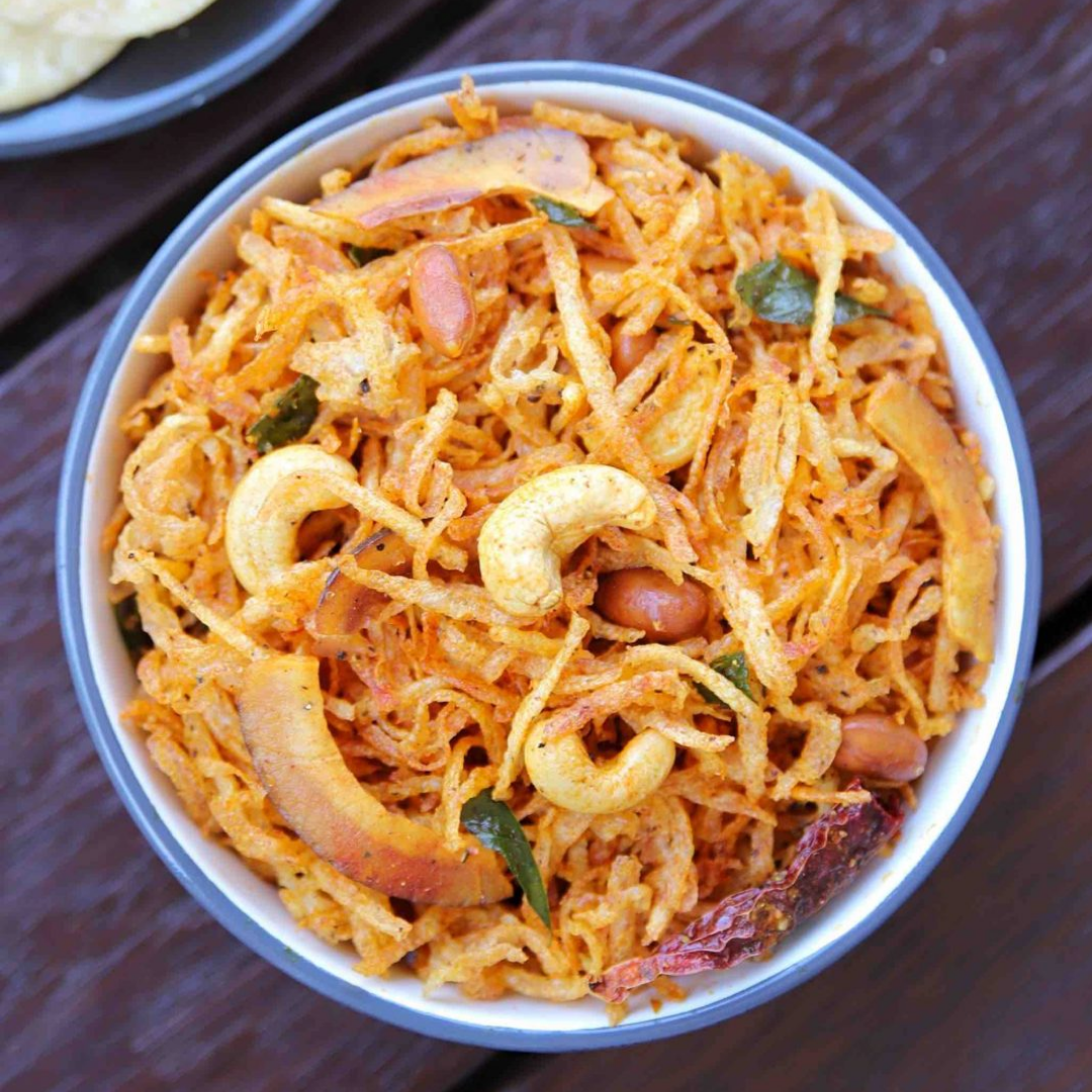 Gangaursweets Aloo Laccha is a crispy, spicy potato snack made from grated potatoes, perfect for munching anytime with irresistible crunch.