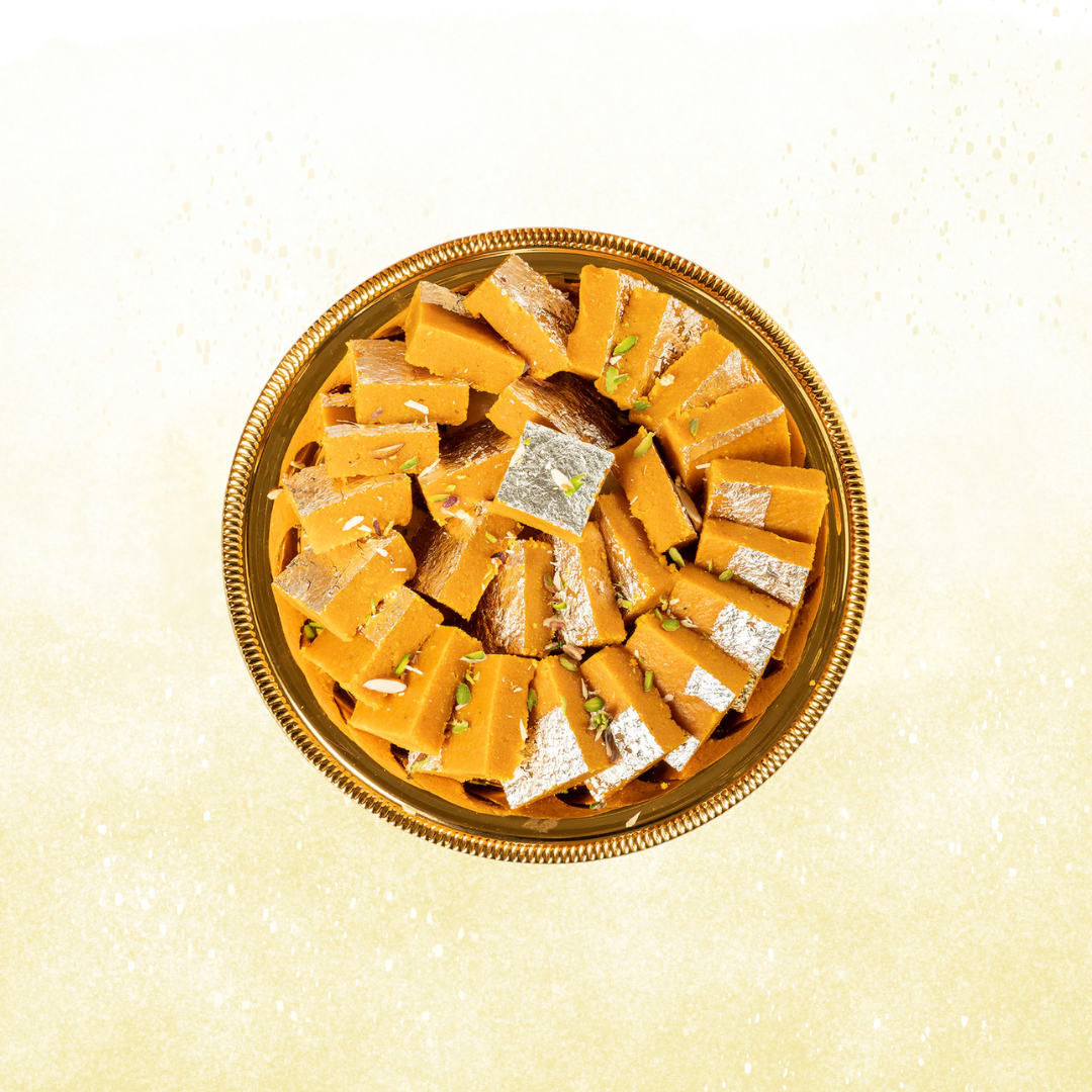 Gangaursweets Besan Barfi (1kg) is a traditional Indian sweet crafted from roasted gram flour, pure desi ghee, and sugar. Infused with aromatic cardamom, it offers a rich, melt-in-the-mouth experience. Perfect for festive celebrations and gifting.