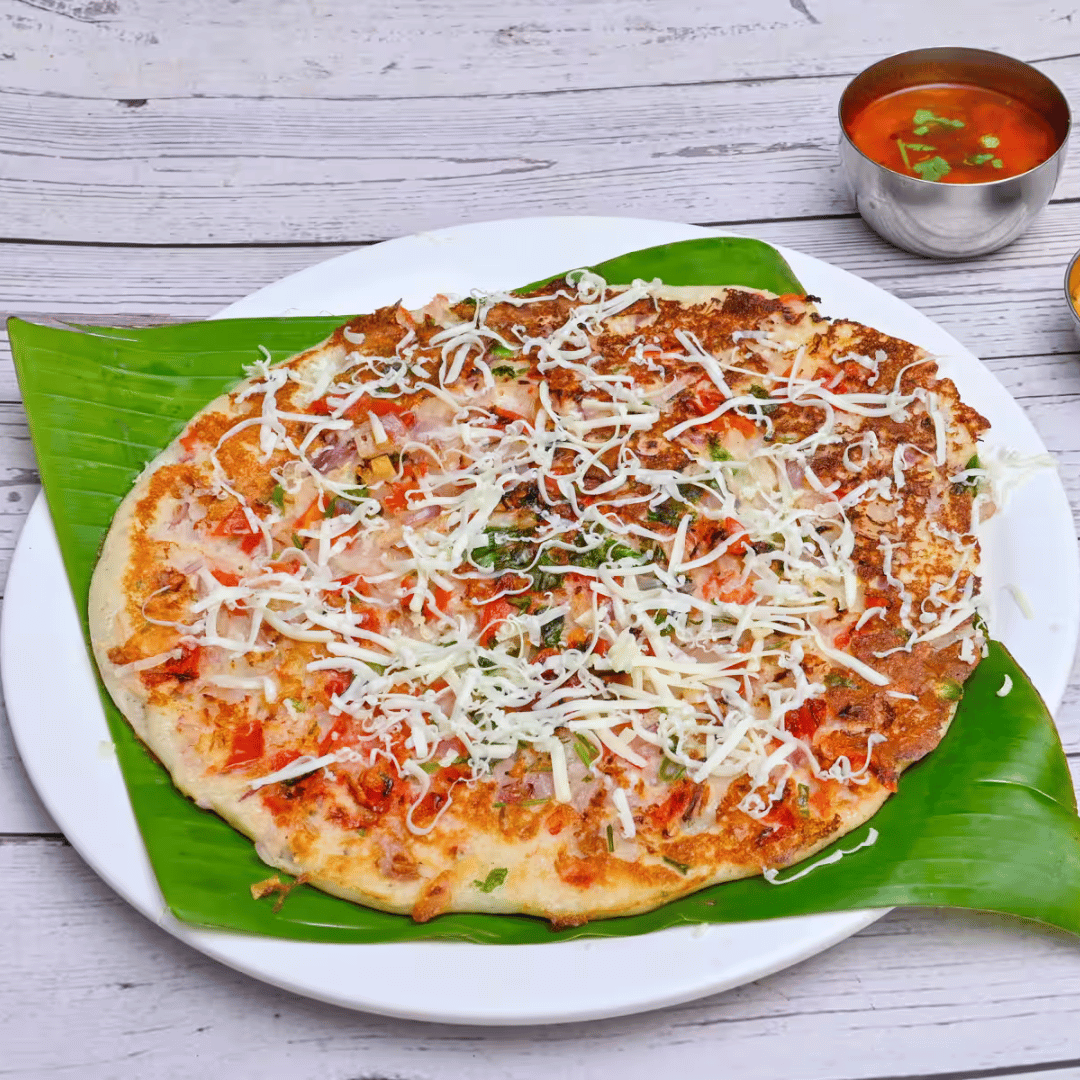 Gangaur Sweets Cheese Uttapam is a savory South Indian pancake topped with melted cheese, veggies, and spices for a delicious, cheesy twist.
