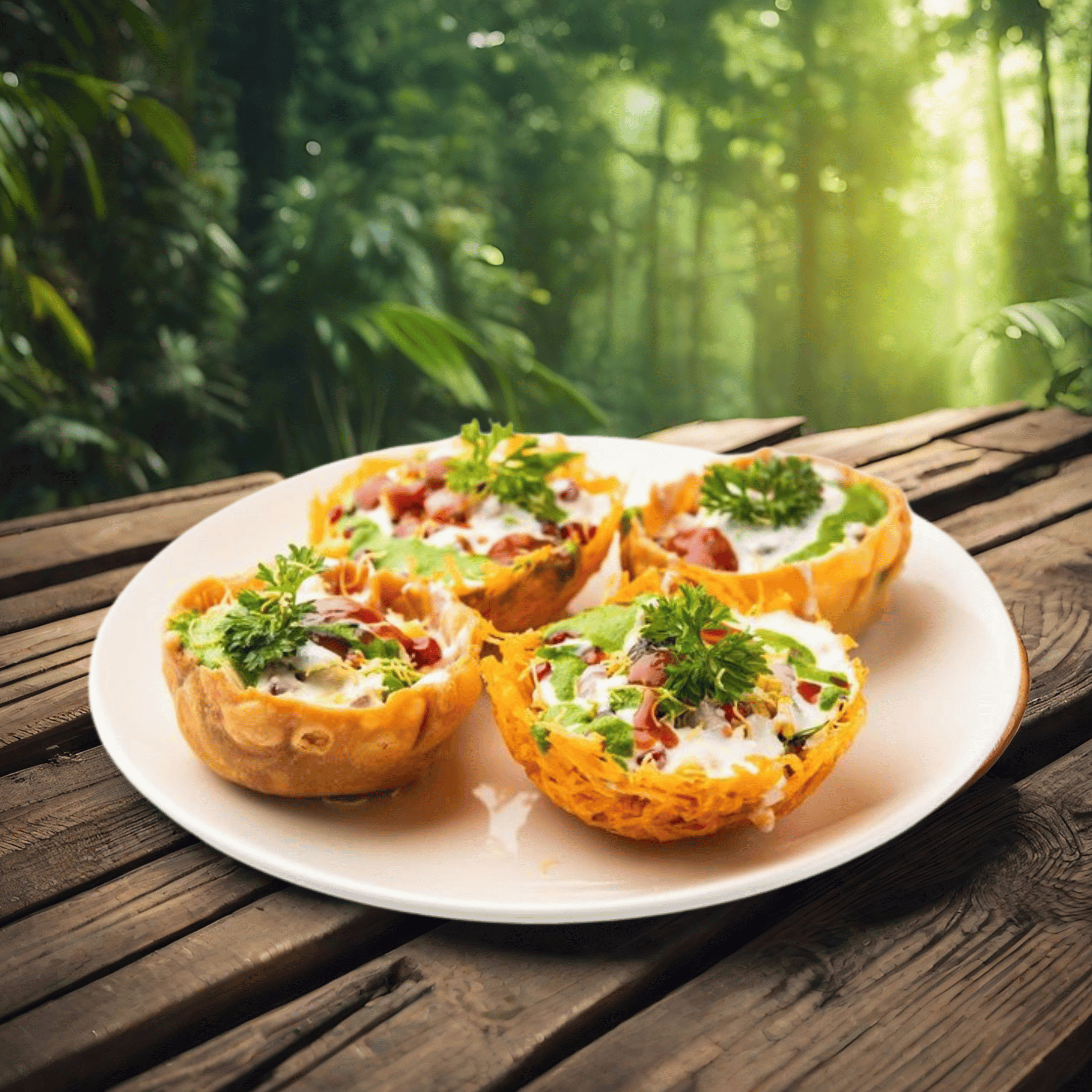 Gangaur Sweets Katori Chaat features crispy, bowl-shaped puris filled with tangy yogurt, spicy chutneys, potatoes, and chickpeas for a flavorful snack.